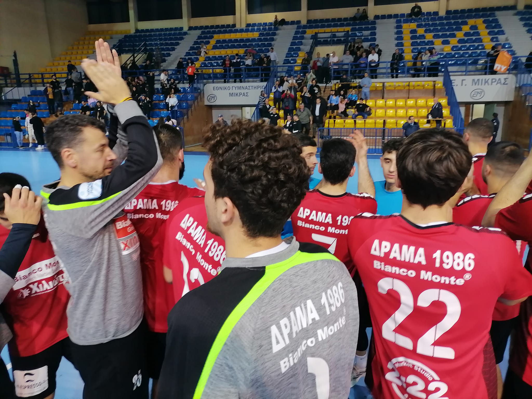 Η ομάδα του Σάκη Βαλαβάνη παρά τις σημαντικές απουσίες των Τουνγκελίδη Καβάζη Δεμερτζίδη πήρε τον έλεγχο στα μέσα του πρώτου μέρους, έχοντας σε εξαιρετική μέρα τον Λευτέρη Παπάζογλου στην εστία και υποχρέωσε σε «αφλογιστία» τους γηπεδούχους για ένα δεκάλεπτο μετατρέποντας το 7-8 του 10’ σε 7-12 στο 20’. Στη συνέχεια η Δράμα διεύρυνε προοδευτικά τη διαφορά, είχε ηγέτες στην επίθεση τους Τόσκα, Χαϊτίδη και Παπαδόπουλο και κατάφερε να φτάσει άνετα στη νίκη. Σημαντική βοήθεια στην άμυνα από Πολύδωρος, Κοβογλανίδης και Μωραΐτη που έπαιζε από πολύ νωρίς με 2 δίλεπτα.