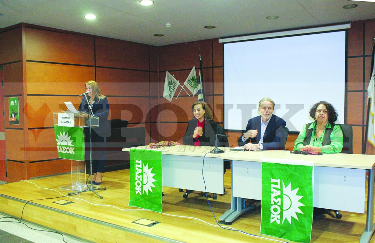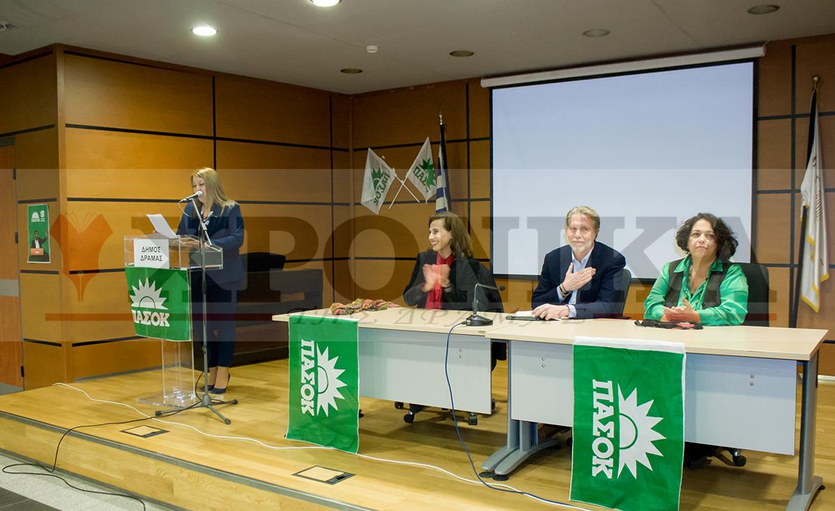Toν πρώην Υπουργό καλωσόρισαν από το βήμα της εκδήλωσης η κα Βασιλική Κασάπη, γραμματέας της ΤΟ Δράμας του ΠΑΣΟΚ, η γραμματέας της ΝΕ ΠΑΣΟΚ κα Πάττυ Κωνσταντινίδου και ακολούθως η Βουλευτής κα Χαρά Κεφαλίδου.