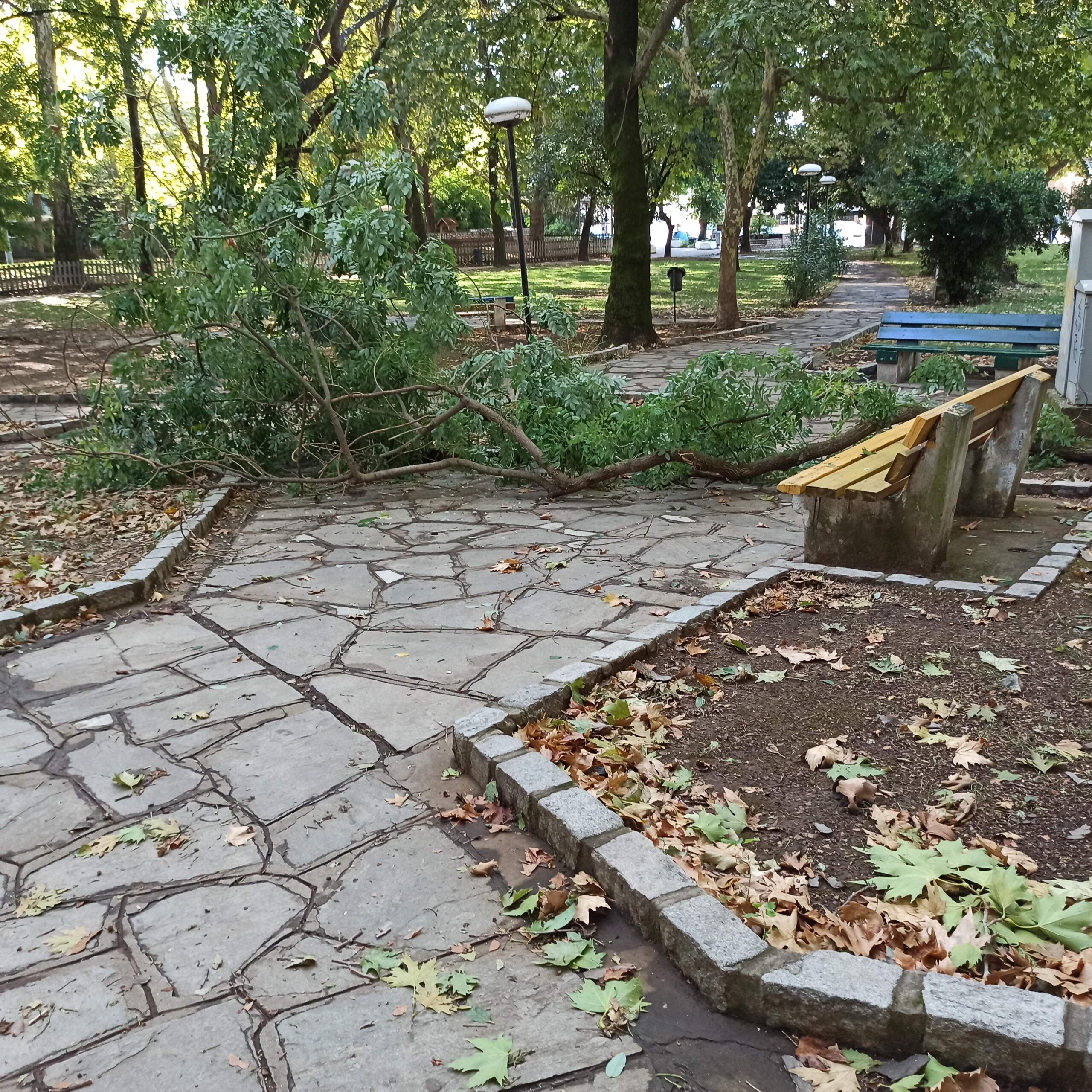 Επικίνδυνες καταστάσεις από πτώσεις δέντρων δημιουργήθηκαν και το πρωί της επόμενης ημέρας, αρκετές ώρες μετά την παύση των δυσμενών καιρικών φαινομένων. Μια τέτοια περίπτωση ήταν οι πτώσεις δέντρων στις παρυφές του Δημοτικού Κήπου, κοντά στην περιοχή του Υπεραστικού ΚΤΕΛ γύρω στις 8.30 το πρωί της Τρίτης. Στο σημείο αυτό, υπήρξαν πτώσεις δύο δέντρων, στο πεζοδρόμιο και μάλιστα με χρονική διαφορά μόλις λίγων λεπτών, μετά την διέλευση πεζών, από το τον ίδιο χώρο. Όπως είπαν στα «Χ» πολίτες που βρέθηκαν κοντά στο σημείο της πτώσης, οι διερχόμενοι σώθηκαν μάλλον από θαύμα, αφού αν περνούσαν με ένα ή δυο λεπτά καθυστέρηση, θα θρηνούσαμε θύματα. Στο ίδιο περίπου σημείο και στο παρελθόν, καταγράφηκαν πτώσεις μεγάλων κλαδιών από δέντρα, κατά την διάρκεια βροχόπτωσης. Τότε οι θαμώνες καταστήματος γλίτωσαν χάρη στις ανοικτές ομπρέλες που βρισκόταν στα τραπεζάκια εστίασης και οι οποίες, όπως αποδείχθηκε τελικά, προσέφεραν ευτυχώς προστασία από τα χειρότερα.