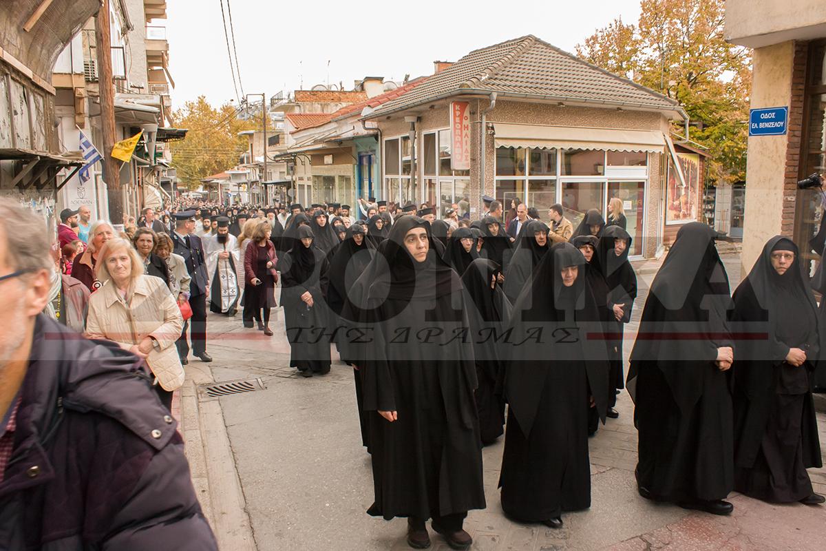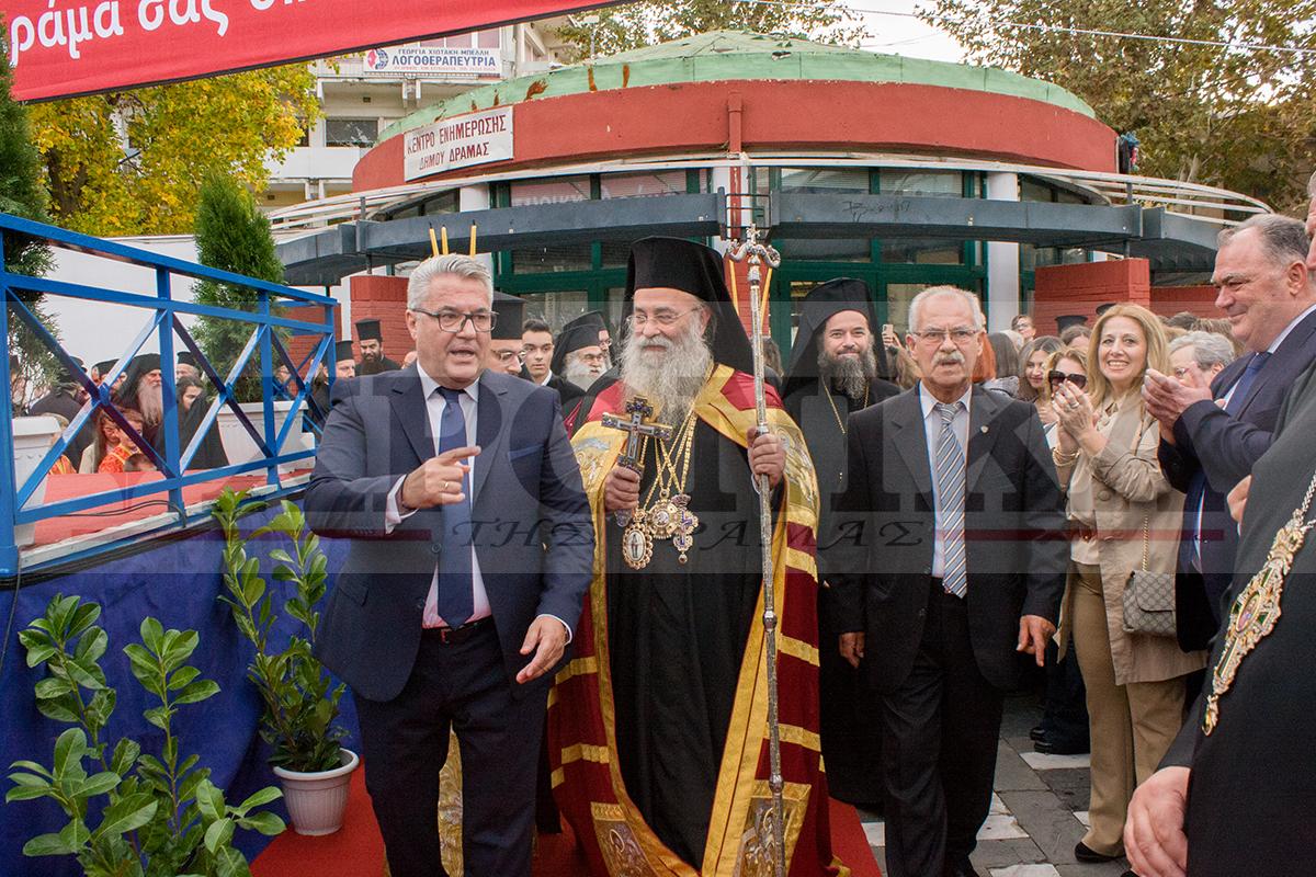 Έντονο ήταν το κλίμα ενθουσιασμού και οι επευφημίες από το συγκεντρωμένο πλήθος προς το νέο ποιμενάρχη της Δράμας, ο οποίος δεν έκρυψε τη χαρά και την συγκίνησή του για την ανάληψη των νέων καθηκόντων του. Αναφωνώντας «Άξιος» το πλήθος χειροκρότησε το νέο Μητροπολίτη Δράμας κατά την έλευσή του στην πλατεία Ελευθερίας όπου τον υποδέχθηκε αρχικά ο Μητροπολίτης Ξάνθης και Περιθεωρίου και τοποτηρητής Δράμας κ. Παντλεήμονας, ο Περιφερειάρχης ΑΜΘ Χρήστος Μέτιος και ο Αντιπεριφερειάρχης Δράμας Γρηγόρης Παπαεμμανουήλ. Εκεί ο νέος Μητροπολίτης Δράμας, δέχθηκε ανθοδέσμη από μικρά παιδιά ντυμένα με παραδοσιακές στολές, ενώ ακολούθως του αποδόθηκαν τιμές και από παρατεταγμένο στρατιωτικό άγημα. Κατά την μετάβασή του προς την πλατεία Ελευθερίας πιστοί και μέλη πολιτιστικών συλλόγων τον χειροκροτούσαν φωνάζοντας “Άξιος” ενώ σε κάποιο σημείο της διαδρομής τον έραιναν και με ροδοπέταλα.