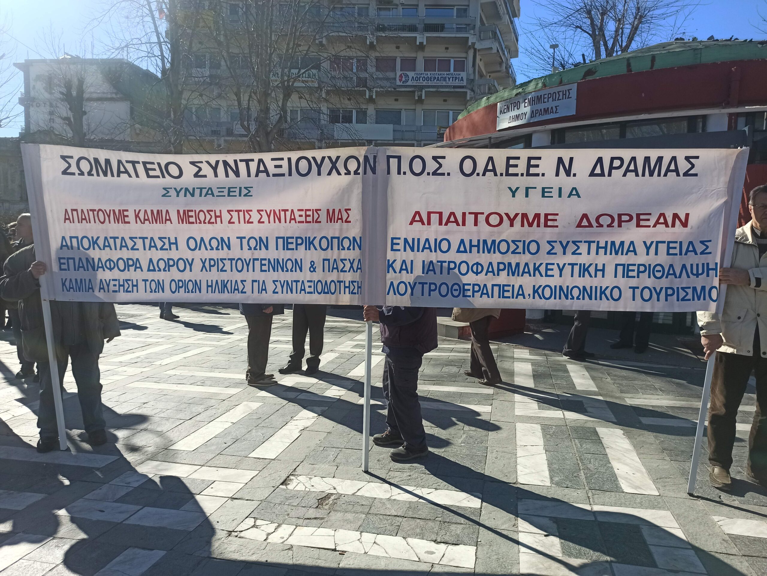 Συνταξιούχοι από την Κεντρική και Ανατολική Μακεδονία, συναντήθηκαν χθες στην πόλη της Δράμας, πραγματοποιώντας συλλαλητήριο στην πλατεία Ελευθερίας και ακολούθως πορεία διαμαρτυρίας μέχρι και το κτήριο της Περιφερειακής Ενότητας Δράμας. Με λεωφορεία και εκπροσώπους σωματείων του ΙΚΑ, του ΟΑΕΕ και του Δημοσίου, από την Δράμα, την Καβάλα και από τις Σέρρες, οι συνταξιούχοι διεκδίκησαν ενσωμάτωση της προσωπικής διαφοράς στις συντάξεις και αυξήσεις σε όλες τις συντάξεις με κατώτερη σύνταξη τα 650-680 ευρώ. Μιλώντας στα ΧΡΟΝΙΚΑ της Δράμας ο πρόεδρος του Σωματείου Συνταξιούχων ΙΚΑ Δράμας κ. Μιχάλης Αθανασιάδης είπε ότι η εκδήλωση διαμαρτυρίας είχε σκοπό να αναδειχθούν και πάλι τα προβλήματα που απασχολούν τον κλάδο των συνταξιούχων και είναι αρκετά σοβαρά. “Μεταξύ αυτών είναι το πρόβλημα με την προσωπική διαφορά, αφού περίπου 1.000.000 συνταξιούχοι δεν βλέπουν αυξήσεις και δεν θα δουν αυξήσεις στα επόμενα χρόνια. Επιμένουμε να ξαναδοθεί το ΕΚΑΣ, που στήριζε τους χαμηλοσυνταξιούχους. Βασικό πρόβλημα είναι η υποχρηματοδότηση του συστήματος υγείας, αφού παρακολουθούμε κάθε ημέρα, τα νοσοκομεία να φθίνουν και να φθάνουν σε σημείο διάλυσης. Να μην παρέχονται καν υπηρεσίες Πρωτοβάθμιας Φροντίδας Υγείας. Σε ότι αφορά τα επιδόματα που εξαγγέλλονται, εμείς ζητούμε πραγματικές αυξήσεις στις συντάξεις. Επιμένουμε ότι η κατώτερη σύνταξη θα πρέπει να είναι τουλάχιστον 650 ευρώ για να μπορεί ο χαμηλοσυνταξιούχος να ρυθμίσει τα του οίκου του. Θέλουμε να μην υπάρχει συνταξιούχος που να λαμβάνει σύνταξη κάτω από 650 ευρώ. Ούτως ή άλλως οι συντάξεις εξανεμίζονται καθημερινά με την ακρίβεια και τις συνεχείς ανατιμήσεις” τόνισε ο κ. Αθανασιάδης. Στα «Χ» μίλησε και ο Γενικός Γραμματέας της Ομοσπονδίας Συνταξιούχων ΙΚΑ Ελλάδος κ. Παναγιώτης Πάλμος αναφέροντας ότι η περιφερειακή συγκέντρωση διαμαρτυρίας των συνταξιούχων στη Δράμα είναι συνέχεια των μεγάλων κινητοποιήσεων που έγιναν την προηγούμενη εβδομάδα και στην Αττική, όπου έγινε μια από τις μεγαλύτερες συγκεντρώσεις που έχουν γίνει τα τελευταία χρόνια, όπως και των κινητοποιήσεων που έχουν γίνει από τους συνταξιούχους τα τελευταία 13 χρόνια. “Αυτές οι κινητοποιήσεις έχουν γίνει λόγω της μεγάλης φτωχοποίησης στην οποία έχουν οδηγήσει τους συνταξιούχους, όλες οι κυβερνήσεις με τους νόμους που έχουν ψηφίσει τα τελευταία χρόνια. Μας έχουν πάρει πάνω από 100 δισ. ευρώ τα τελευταία 13 χρόνια. Έρχονται και πάλι εκλογές αλλά το πρόγραμμά τους δεν έχει λύσεις στα προβλήματα των συνταξιούχων. Εμείς λέμε ότι επειδή όποια κυβέρνηση κι αν βγει δεν έχει σκοπό να μας λύσει τα προβλήματα, ο μόνος δρόμος είναι ο αγώνας. Με αυτή την έννοια εμείς δεν κάνουμε αντιπολίτευση σε κανένα κόμμα αλλά καλούμε τους συνταξιούχους να συμμετέχουν στους αγώνες που είναι και το μοναδικό τους όπλο για να βρεθούν λύσεις στα προβλήματα. Ζητάμε αυξήσεις σε όλους τους συνταξιούχους, τόσο στην κύρια όσο και στην επικουρική σύνταξη, να δοθούν τα αναδρομικά του ενδεκάμηνου, να δοθεί τώρα η 13η σύνταξη για το Πάσχα, να δοθεί στους ανάπηρους όλη η Εθνική Σύνταξη και όχι ποσοστιαία, να λυθούν ζητήματα που έχουν να κάνουν με τις συντάξεις χηρείας, να γίνει ο επανυπολογισμός σε αυτούς που δεν έχει γίνει, όπως και αρκετά ακόμη ζητήματα όπως αυτά που αφορούν τα προβλήματα στο χώρο της υγείας…».