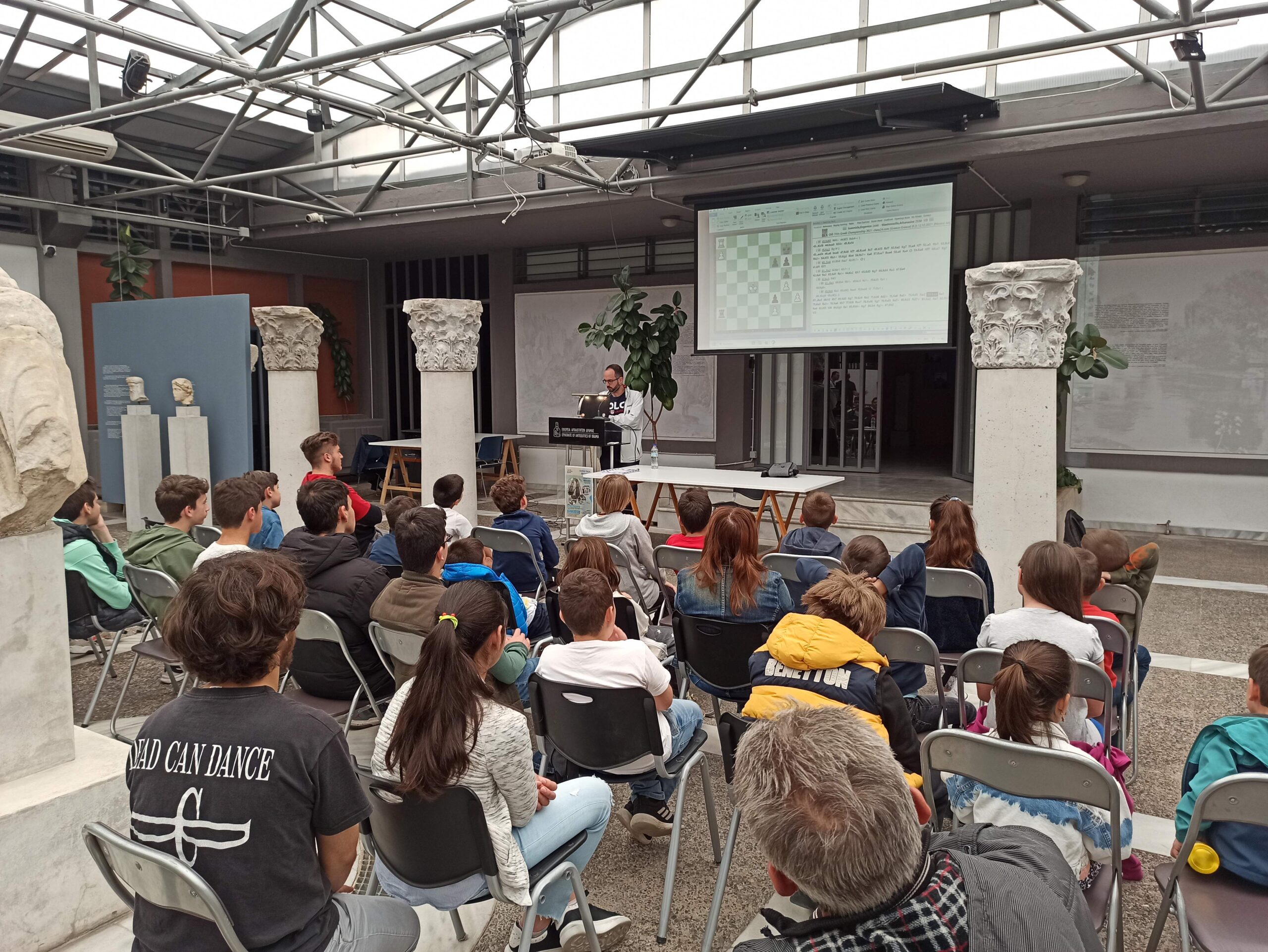 – Ομιλία και αγώνας Σιμουλτανέ με τον Πρωταθλητή Ελλάδος στο σκάκι κ. Θάνο Μαστροβασίλη, ο οποίος μίλησε στα «Χ»