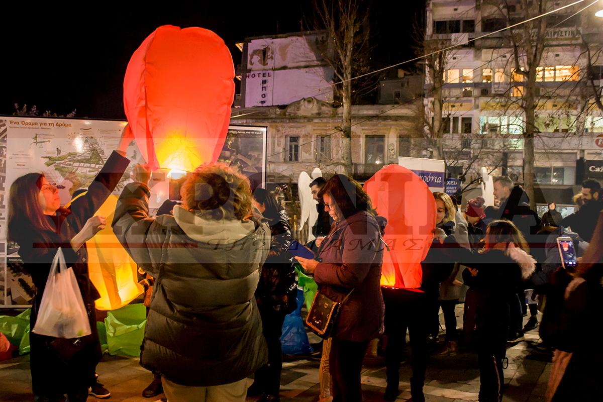 Το βράδυ της Τρίτης 20 Δεκεμβρίου ο Σύλλογος Παραπληγικών Ν. Δράμας με τη συμμετοχή δεκάδων συμπολιτών μας πραγματοποίησε και φέτος στην πλατεία Ελευθερίας τη δράση με τα αιωρούμενα φαναράκια των ευχών. Μικροί και μεγαλύτεροι Δραμινοί παρά την χαμηλή θερμοκρασία ανταποκρίθηκαν στο κάλεσμα του συλλόγου και έστειλαν και φέτος ψηλά τις ευχές τους για να φωτίσουν τον χειμωνιάτικο ουρανό.