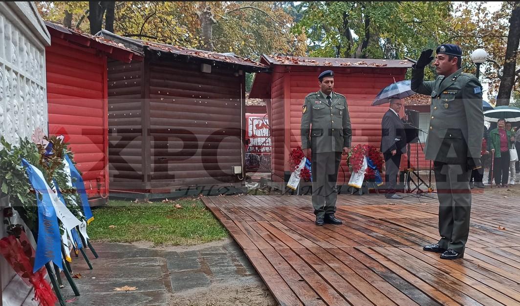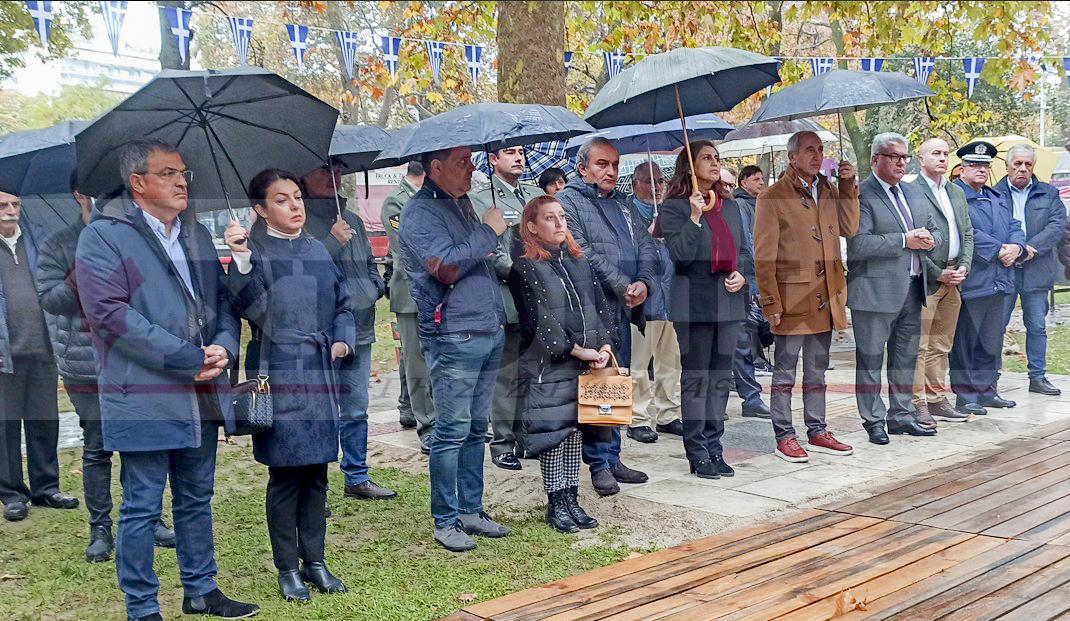 Η βροχή δεν εμπόδισε τη διεξαγωγή της εκδήλωσης που πραγματοποιήθηκε το πρωί της Πέμπτης στη Δράμα, προς τιμήν της εξέγερσης των φοιτητών του Πολυτεχνείου το 1973.