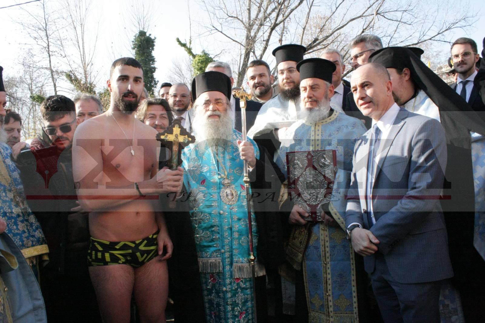 Ένας 26χρονος γυμναστής από τη Δράμα, ο Βασίλης Κωνσταντινίδης, είχε την ευλογία να πιάσει πρώτος τον Σταυρό, στην καθιερωμένη τελετή καθαγιασμού των υδάτων που έγινε το πρωί στην λίμνη της Αγίας Βαρβάρας. Ο Αγιασμός τελέστηκε από τον Σεβασμιότατο Μητροπολίτη Δράμας κ. Δωρόθερο, παρουσία πλήθους κόσμου και εκπροσώπων των Αρχών. Ο καιρός ήταν σχεδόν ανοιξιάτικος με αποτέλεσμα μικροί και μεγαλύτεροι Δραμινοί να πλημμυρίσουν τον χώρο και να τιμήσουν την παράδοση, μετά από δυο χρόνια περιορισμών λόγω της υγειονομικής κρίσης.