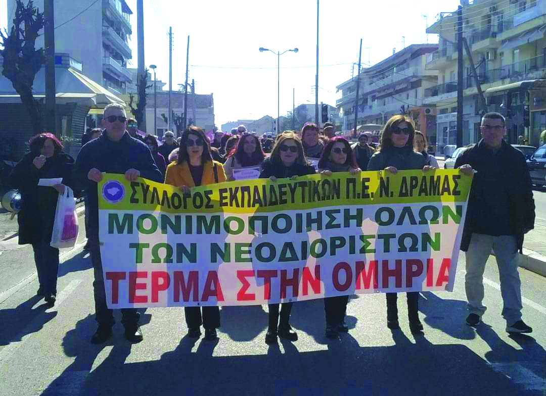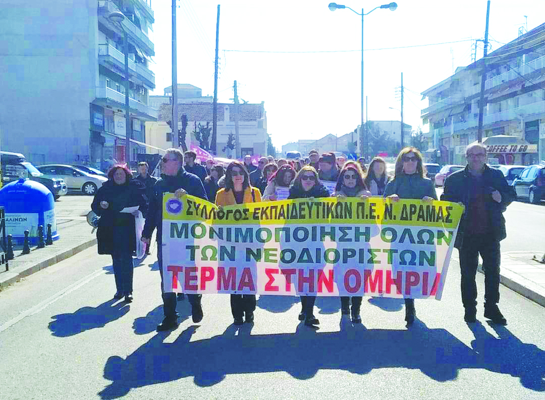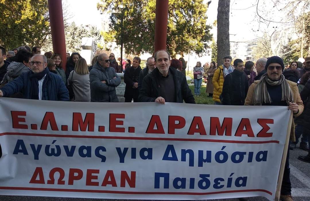 Σε απεργιακή κινητοποίηση με πρωτοφανή συμμετοχή για τα δεδομένα των τελευταίων ετών συμμετείχαν οι εκπαιδευτικοί της πρωτοβάθμιας και της δευτεροβάθμιας εκπαίδευσης Δράμας την Τετάρτη, με την υποστήριξη και του Νομαρχιακού Τμήματος της ΑΔΕΔΥ.