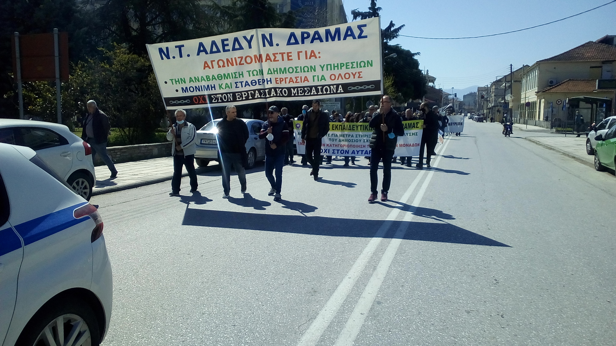 Τις συγκεντρώσεις διαμαρτυρίας οργάνωσαν το Εργατικό Κέντρο Δράμας, το Νομαρχιακό Τμήμα της ΑΔΕΔΥ και το Σωματείο Ιδιωτικών Υπαλλήλων και Εμποροϋπαλλήλων Δράμας. Την χθεσινή 24ωρη απεργία είχαν εξαγγείλει η ΓΣΕΕ, η ΑΔΕΔΥ και άλλα εργασιακά σωματεία.