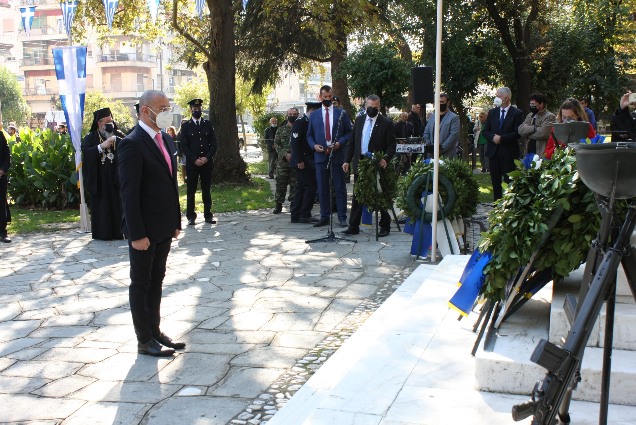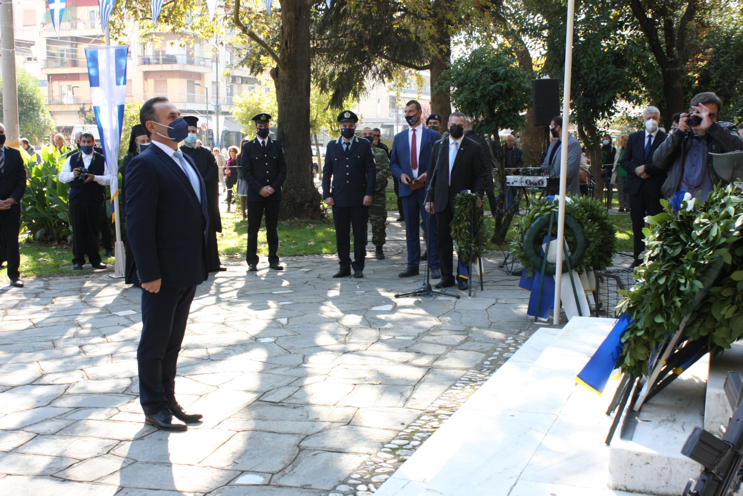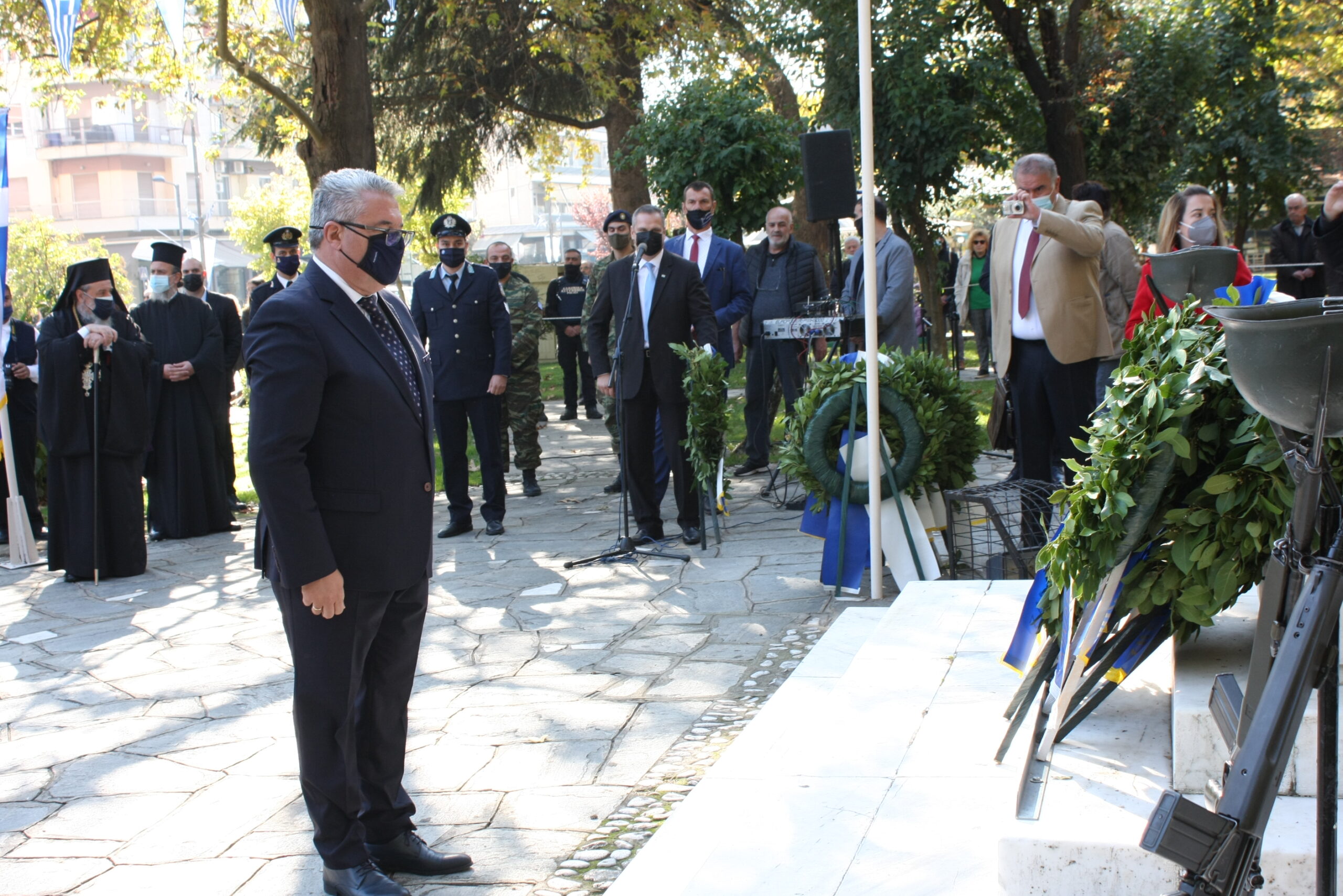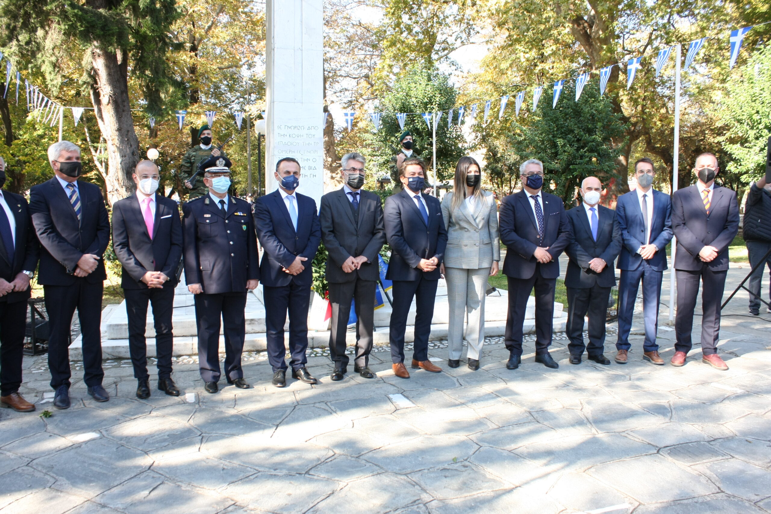 Πιο συγκεκριμένα στις 10:30 το πρωί της Πέμπτης πραγματοποιήθηκε η επίσημη δοξολογία στον Ιερό Μητροπολιτικό Ναό, ΥΥχοροστατούντος του Σεβασμιώτατου Μητροπολίτη Δράμας, κ.κ. Παύλου, μαζί με τον Ιερό Kλήρο της πόλης. Ακολούθησε εκφώνηση του πανηγυρικού της ημέρας από τον κ. Αναστάσιο Σαλή, Διευθυντή του 1ου ΕΠΑΛ Δράμας. Στις 11:30 έγινε μετάβαση επισήμων στο άγαλμα της Ελευθερίας. Ακολούθησε επιμνημόσυνη δέηση, κατάθεση στεφάνων από την εκπρόσωπο της Κυβέρνησης, τους Βουλευτές Ν. Δράμας, τον Ανώτερο Διοικητή Φρουράς Δράμας, τον Αντιπεριφερειάρχη Δράμας, τον Δήμαρχο Δράμας, τον Πρόεδρο Περιφερειακού Συμβουλίου Α.Μ.Θ., εκπροσώπους κοινοβουλευτικών κομμάτων, τον Αστυνομικό Διευθυντή Δράμας, τον Διοικητή Πυροσβεστικής Υπηρεσίας Δράμας, εκπροσώπους Αποστράτων και Εφέδρων Αξιωματικών, τους εκπροσώπους των Αντιστασιακών Οργανώσεων και την Πρόεδρο του Περιφερειακού Τμήματος του Ελληνικού Ερυθρού Σταυρού Δράμας. Τηρήθηκε σιγή ενός λεπτού και εψάλη ο Εθνικός Ύμνος. Στην τελετή που έγινε στο άγαλμα της Ελευθερίας παρέστησαν και μαθητές και μαθήτριες της Χριστιανικής Εστίας Δράμας. Μιλώντας για την επίσκεψή της Δράμα και τον χαρακτήρα της ημέρας, η Υφυπουργός Τουρισμού κα Σοφία Ζαχαράκη τόνισε: «Είναι τιμή για εμένα να εκπροσωπώ την Κυβέρνηση σε μια τόσο συγκλονιστική ημέρα για το έθνος. Είναι συγκινητική γιατί μπορεί να περνούν τα χρόνια αλλά στην πορεία έμειναν οι αφηγήσεις αυτών των ανθρώπων που πολέμησαν στο μέτωπο. Ζήτησαν να παλέψουν για την ελευθερία, τη δικαιοσύνη, για αρχές και αξίες ακόμη και σε μία περίοδο που άλλα κράτη είχαν υποδουλωθεί, είχαν υποκύψει στον φόβο. Η Ελλάδα δεν υπέκυψε. Αυτά είναι ένα σύνολο ιδανικών και αξιών που περνούν από γενιά σε γενιά. Τα νέα παιδιά είναι σημαντικό να ξέρουν ότι η Ελλάδα σε μια κρίσιμη στιγμή είπε ένα μεγάλο “ΟΧΙ” και βέβαια ότι αμούστακα παιδιά πήγαν και πολέμησαν. Ποιες είναι οι σύγχρονες προκλήσεις για τις γενιές μας; Να αντιμετωπίσουμε μια πανδημία που προέκυψε αυτή τη στιγμή, μία οικονομική κρίση που έχει βασανίσει την Ελλάδα για πολλά χρόνια και προσπαθούμε να κάνουμε βήματα μπροστά με πρόγραμμα. Από την άλλη τα νέα παιδιά να βρουν λόγο να παραμείνουν στον τόπο τους και να βρουν δουλειές έτσι ώστε να συνοδεύεται όλο αυτό το όραμα και τα ιδανικά και με ανάπτυξη και με θέσεις εργασίας. Τη Δράμα την αγαπώ ιδιαίτερα. Έχω έρθει αρκετές φορές και ως Υπουργός Παιδείας αλλά και τώρα με την πολύ τιμητική θέση της Υφυπουργού Τουρισμού. Είναι μια δύσκολη περίοδος. Ακούμε ότι υπάρχει αύξηση κρουσμάτων. Βλέπουμε την αύξηση των εισαγωγών και στις νοσηλείες και στις εντατικές. Ένα μήνυμα από έναν άνθρωπο που έχει περάσει από covid και έχει εμβολιαστεί. Να εμβολιαστούμε. Να ακούσουμε τους γιατρούς, τους επιστήμονες». Ο Βουλευτής Δράμας της ΝΔ κ. Κωνσταντίνος Μπλούχος είπε για τον χαρακτήρα της ημέρας: «To έπος του ’40 δίδαξε πολλά στο παρελθόν και θα διδάσκει πάντα. Είναι μνημείο εθνικής υπερηφάνειας, δηλωτικό της εθνικής αξιοπρέπειας, της πίστης μας στην Ελευθερία και στο Θεό. Διδάγματα που πρέπει να παραμείνουν και να συνεχίσουν να υφίστανται στους σύγχρονους πολέμους και να μας καθοδηγούν. Οπότε ας αγρυπνούμε και ας έχουμε πίστη». Ο Βουλευτής Δράμας του ΣΥΡΙΖΑ κ. Θεόφιλος Ξανθόπουλος ανέφερε: «Είναι μια μεγάλη ημέρα. Μια ημέρα μνήμης και τιμής. Μια ημέρα οδοδείκτης για το τι σημαίνει ένας λαός ενωμέν