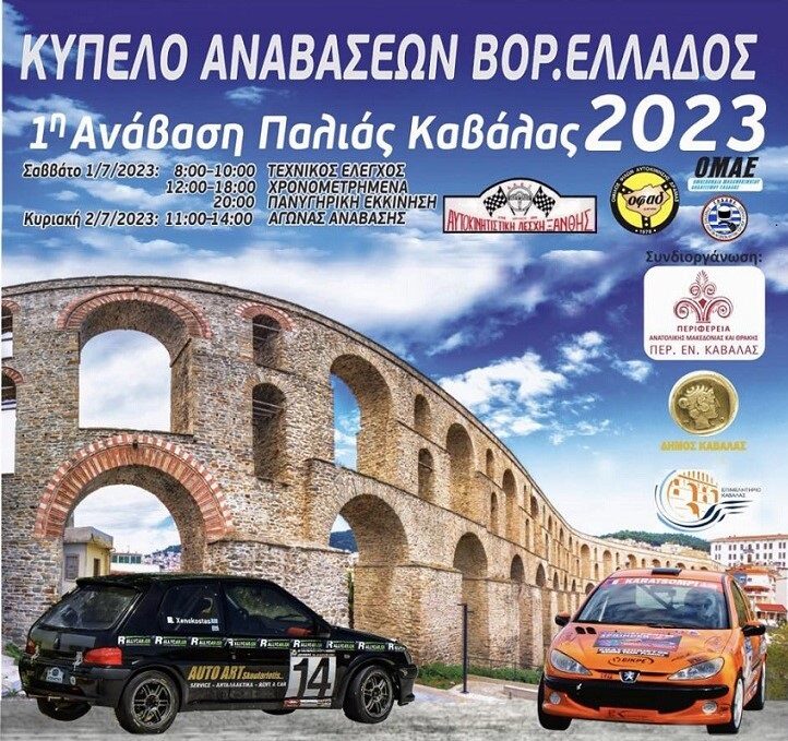 Το Σάββατο – Κυριακή 1-2/7/2023 η Αυτοκινητιστική Λέσχη Ξάνθης και ο Όμιλος Φίλων Αυτοκίνησης Δράμας, με συνδιαργανωτές την Περιφερειακή Ενότητα Καβάλας και το Δήμο Καβάλας, διοργανώνουν τον αγώνα «Ανάβαση Παλιάς Καβάλας 2023». Ο αγώνας μετρά στο κύπελλο αναβάσεων Βορείου Ελλάδος, σύμφωνα με το Αγωνιστικό Ημερολόγιο του 2023, της Ομοσπονδίας Μηχανοκίνητου Αθλητισμού Ελλάδος (ΟΜΑΕ).