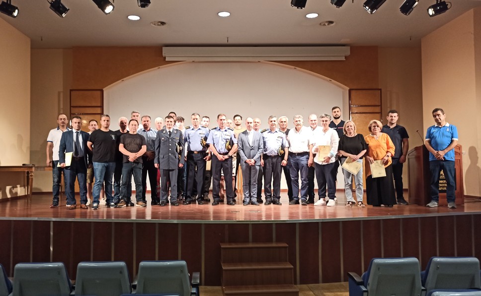 Στην εκδήλωση επιδόθηκε έπαινος στην Ελληνική Διασωστική Εθελοντική Ομάδα (Ε.Δ.Ε.Ο.), στον Ελληνικό Ερυθρό Σταυρός-Σαμαρείτες Δράμας, στον Σύλλογο Ραδιοερασιτεχνών και Φίλων Δράμας, στον Σύλλογο Προστατεύω τον Εαυτό μου και τους Άλλους (ΠΡΟ.Τ.Ε.Κ.Τ.Α.) Δράμας, στον Κυνηγητικό Σύλλογο Δράμας, στην Λέσχη Καταδρομέων Δράμας, στην Οικολογική Κίνηση Δράμας και στον Κυνηγετικό Σύλλογο Προσοτσάνης.